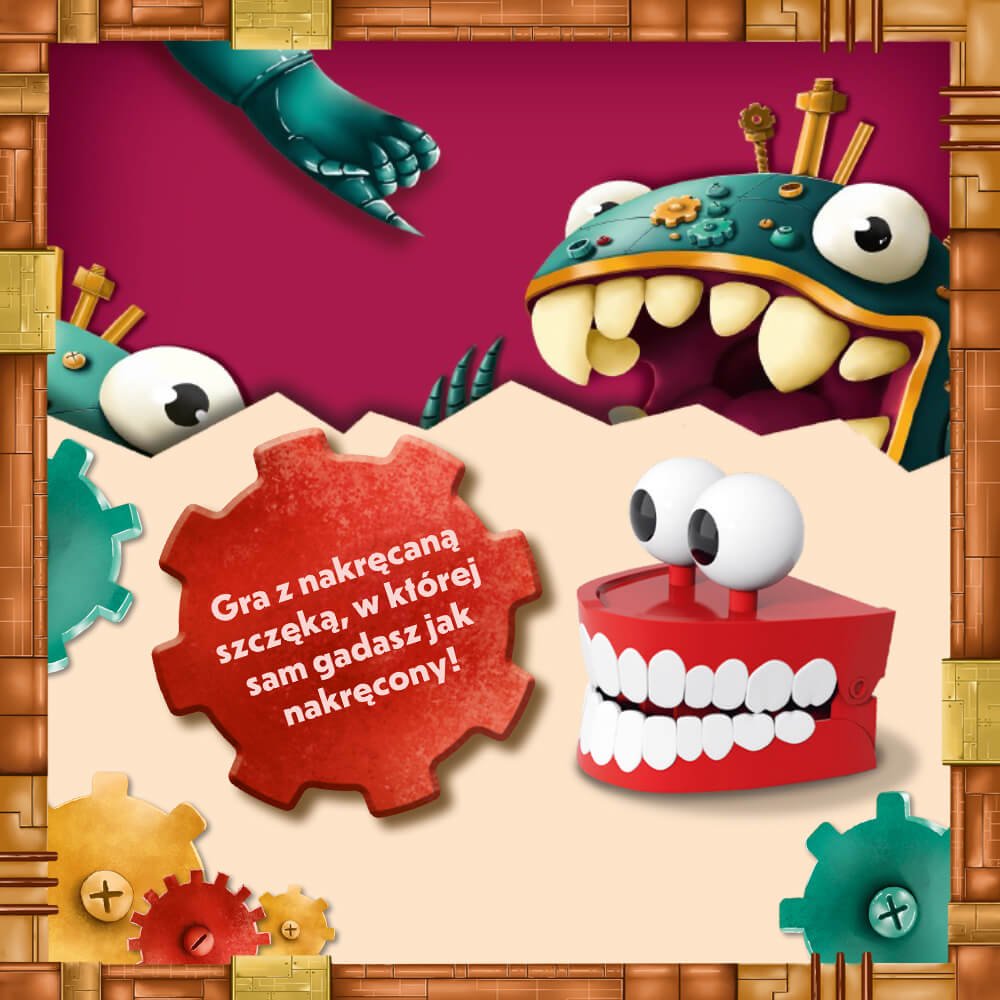 Nakręć szczękę do oporu i odpowiadaj tak szybko, jak potrafisz, by zdobyć jak najwięcej punktów! Zadanie jest proste: podać jak najwięcej poprawnych odpowiedzi do wylosowanego hasła, zanim szczęka przestanie kłapać. Presja czasu i nieprzewidywalne przeszkadzajki, które mogą utrudnić kolejną rundę, sprawiają, że każda rozgrywka to wybuch śmiechu i solidna dawka zdrowej rywalizacji.