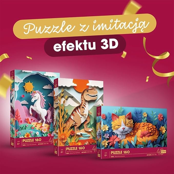 Z okazji 40-lecia marki Trefl przestawiamy wyjątkową kolekcję puzzli, łącząca sztukę i efekt 3D! Seria składa się z unikalnych wzorów, inspirowanych sztuką paper art – techniką tworzenia wielowarstwowych ilustracji.