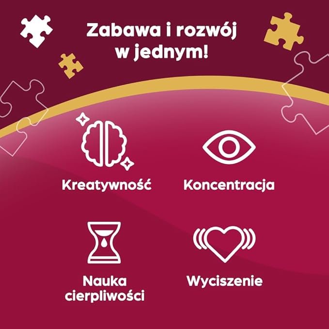 Układanie puzzli pobudza ciekawość świata i wyobraźnię, przyjemnie łącząc naukę i zabawę, wycisza dziecko, ćwiczy koncentrację, uczy cierpliwości i spostrzegawczości, buduje pewność siebie.