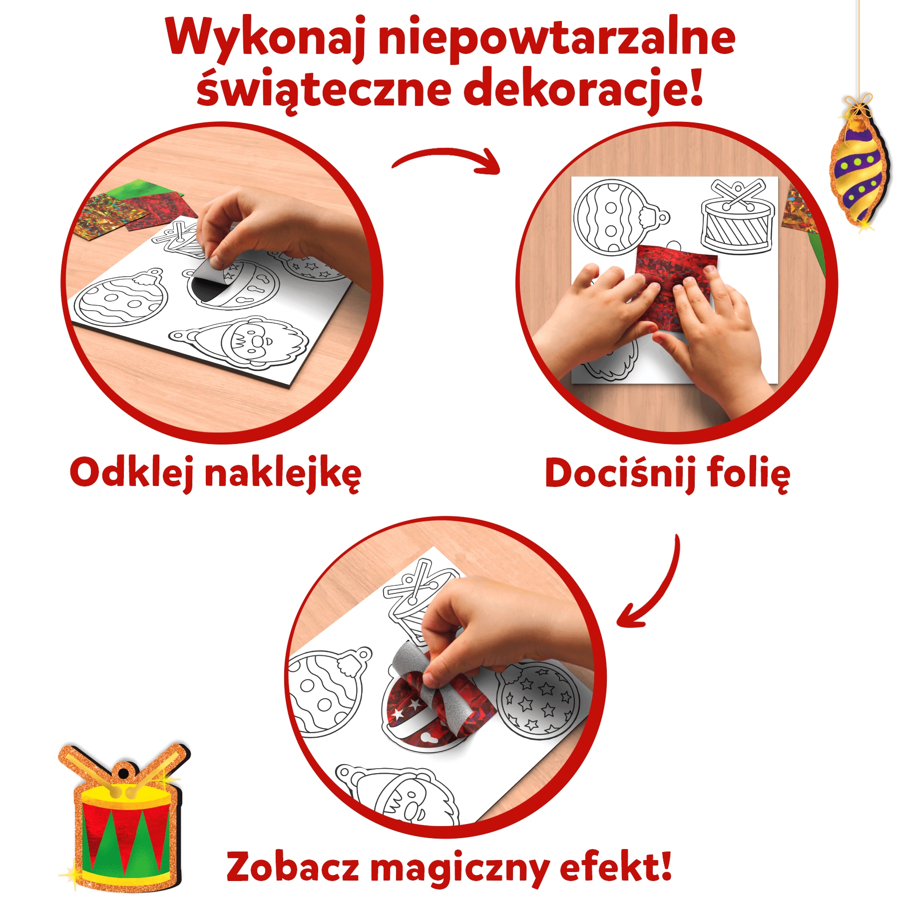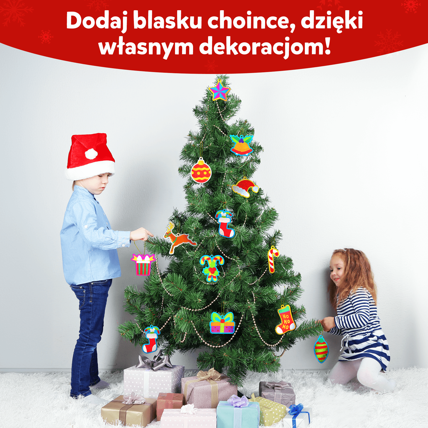 Własnoręcznie wykonane ozdoby dodadzą uroku choince i będą piękną pamiątką wspólnie spędzonych chwil. Zestaw wspiera rozwój małej motoryki, koordynacji ręka-oko oraz kreatywności, a jednocześnie zapewnia radosną, rodzinną zabawę.